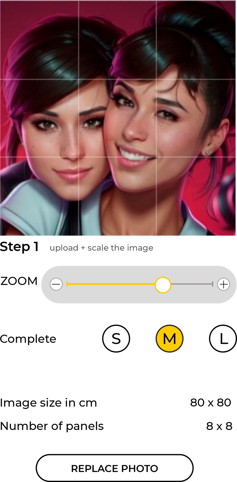 After uploading your image, select the area you’d like to use for your mosaic. Simply place the selection box over the desired part of the photo and drag the lower-right corner to adjust the size.